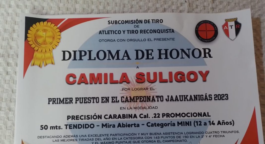 Para lograr este resultado final, se tomaban los resultados de los 7 encuentros realizados durante el año 2023, y haciendo un promedio de los mismos, en donde en la categoría Mini (12 a 14 años), quedo en primer lugar Camila Suligoy, tanto en disciplina aire comprimido calibre 4.5mm a 10 metros, como con carabina 22lr mira abierta, posición tendido a 50 metros. Y por otro lado también Mirko Suligoy en primer puesto en disciplina aire comprimido calibre 4.5mm a 10 metros, en categoría mayores (+19 años).